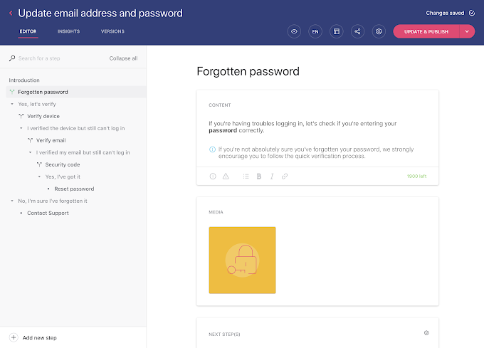 At any time, you can see a flowchart of your guide to check that everything works as expected. You can translate your guides in multiple languages as well.